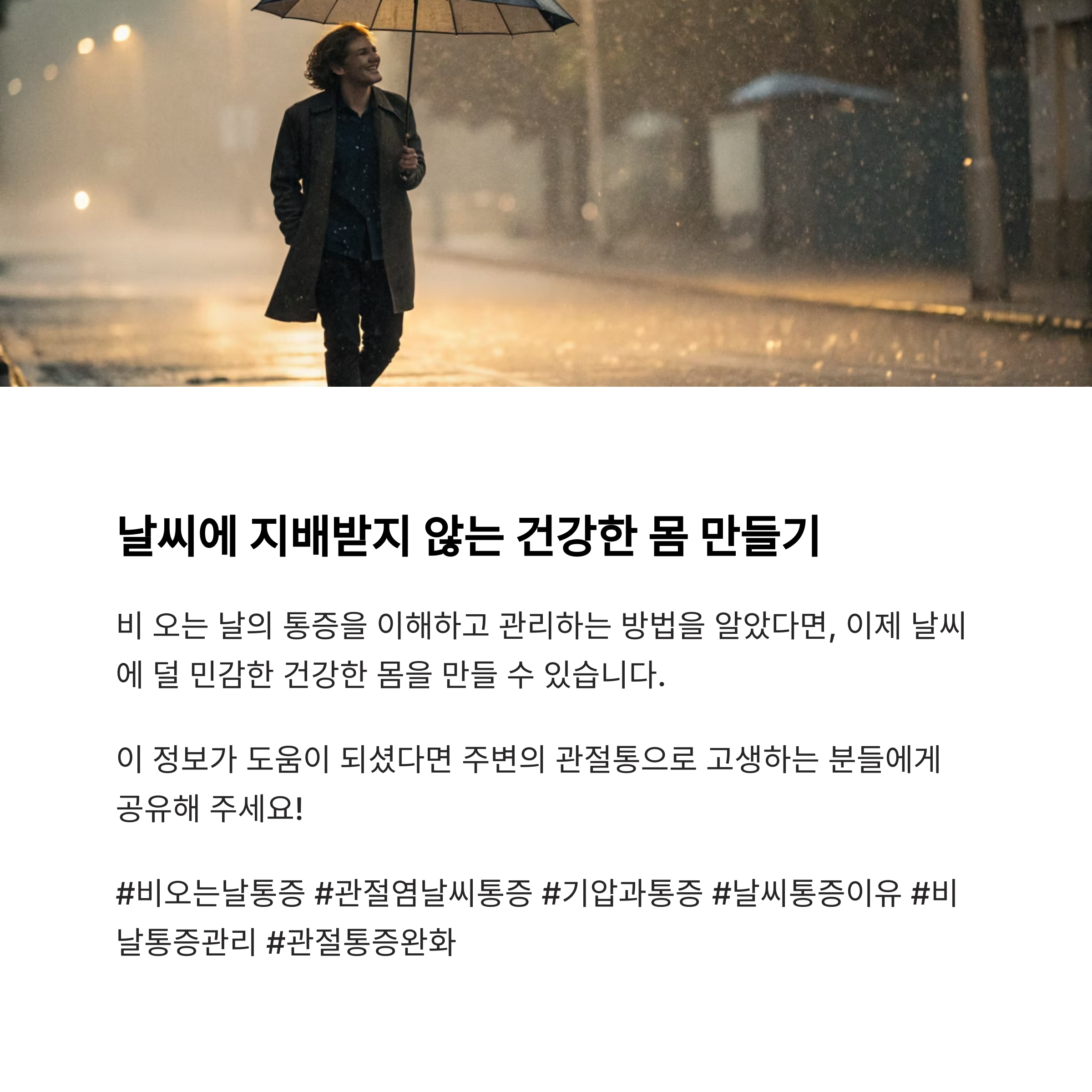 이번 글에서는 비 오는 날 통증이 심해지는 원인과 과학적 근거, 관리 방법까지 자세히 설명드립니다.
