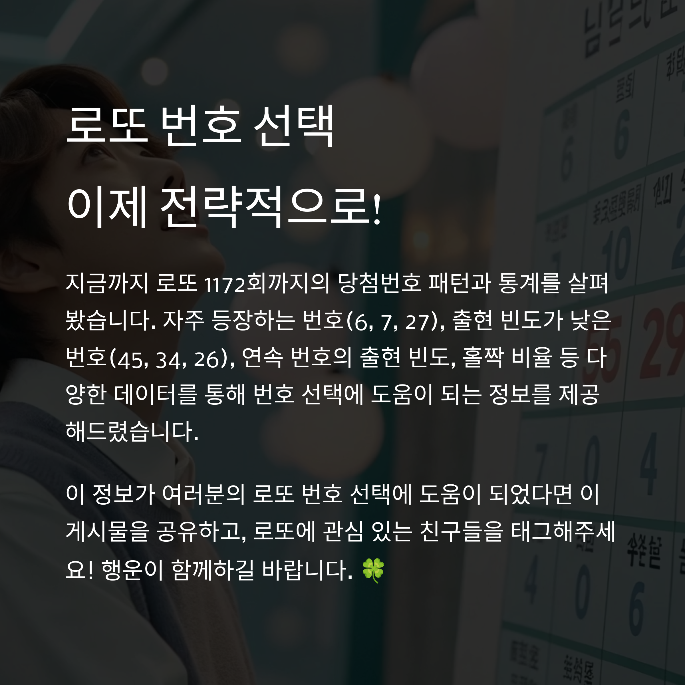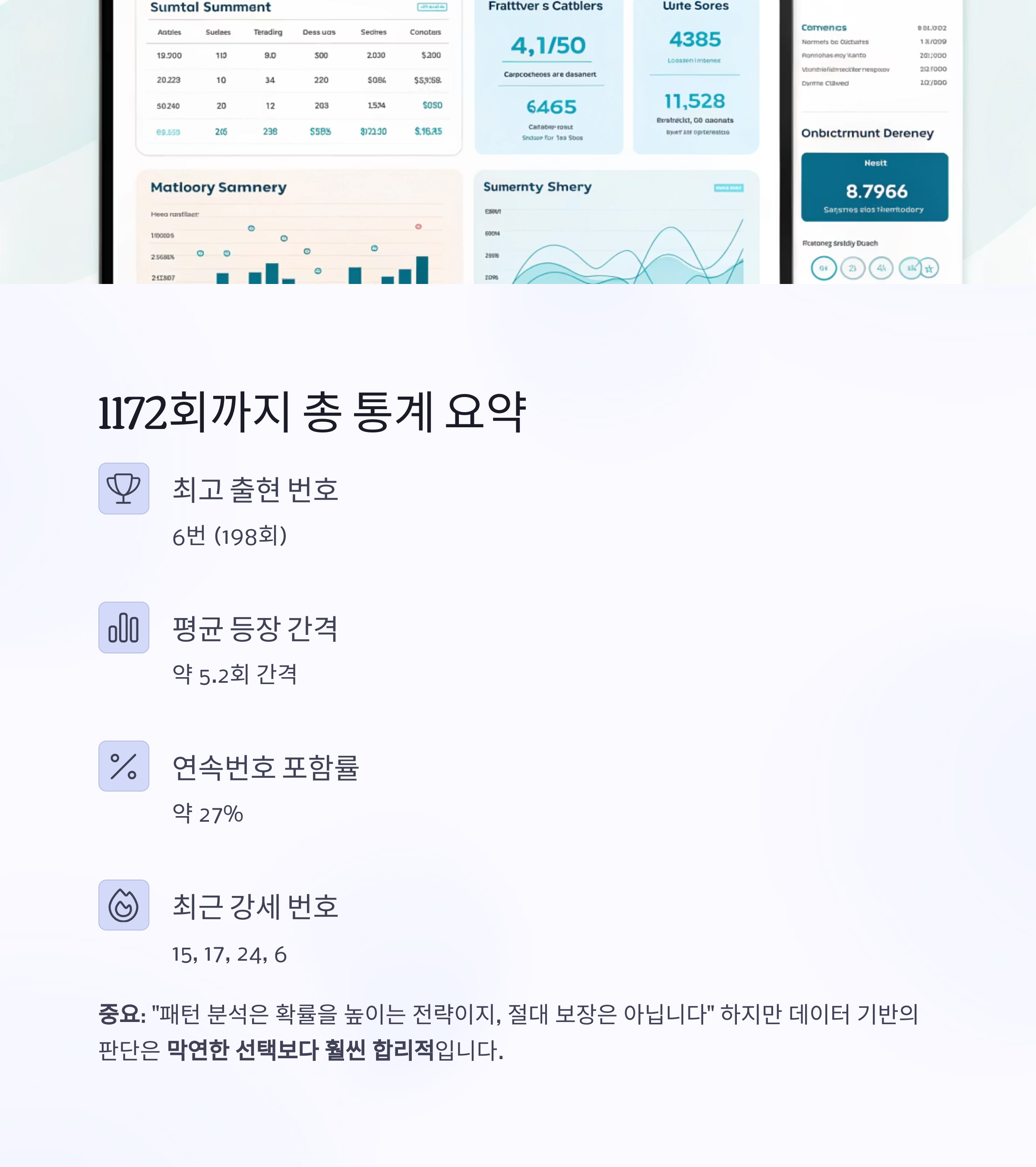 1172회까지의 로또 당첨번호를 정리하면, 그 안에 숨어 있는 패턴과 숫자 통계를 통해 앞으로의 전략도 유추해볼 수 있습니다.