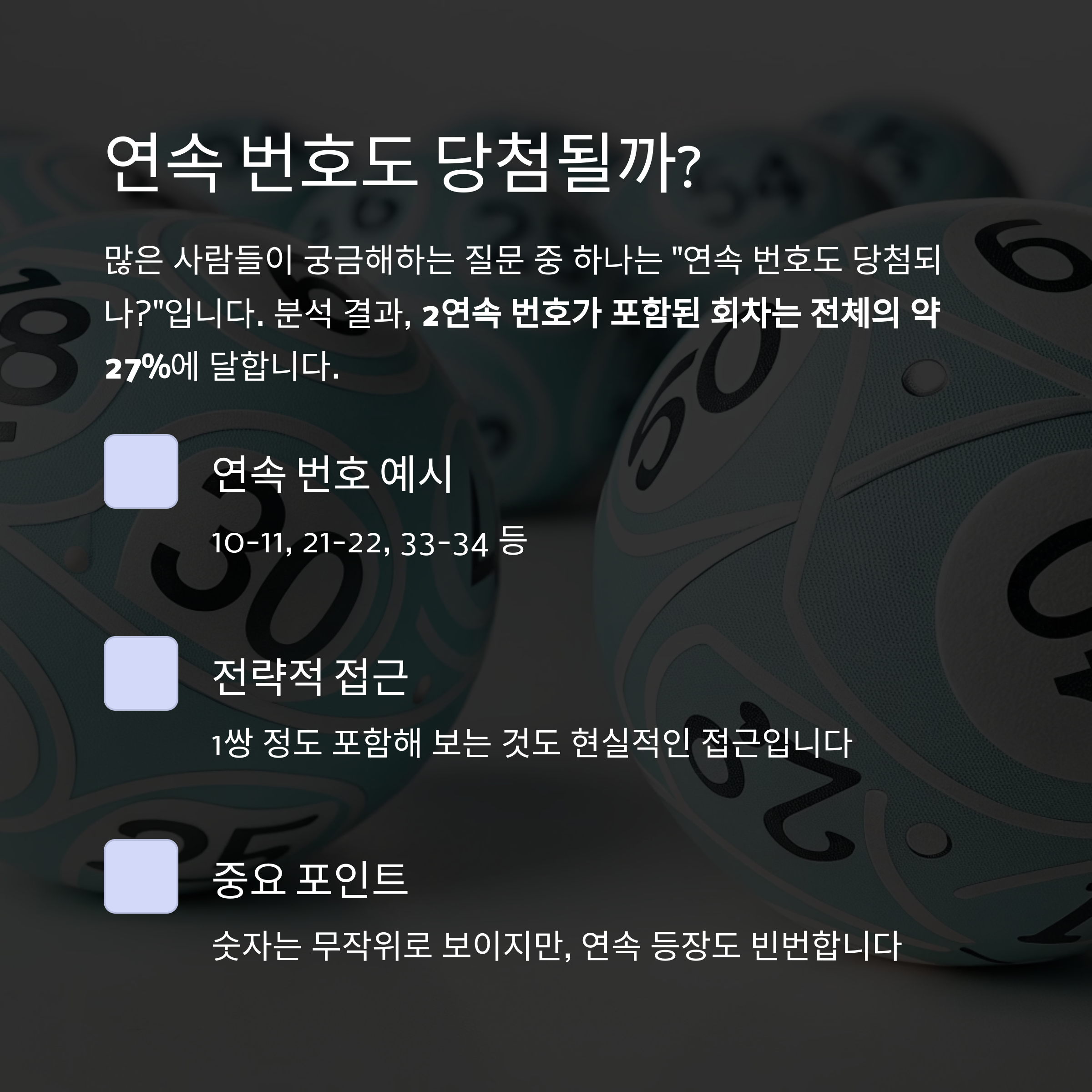 분석 결과, **2연속 번호가 포함된 회차는 전체의 약 27%**에 달합니다.
