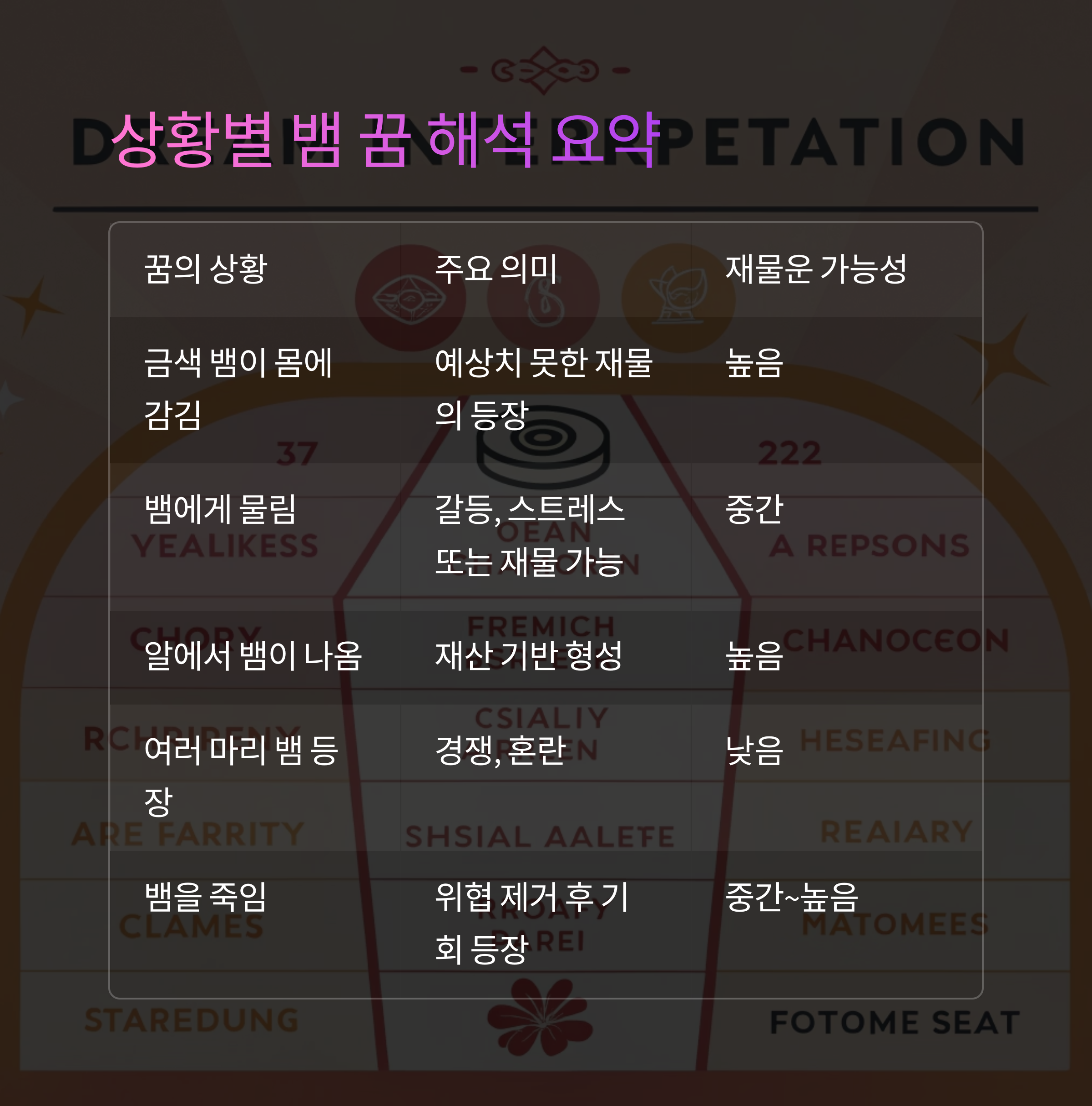상황별 뱀 꿈 해석 요약 표