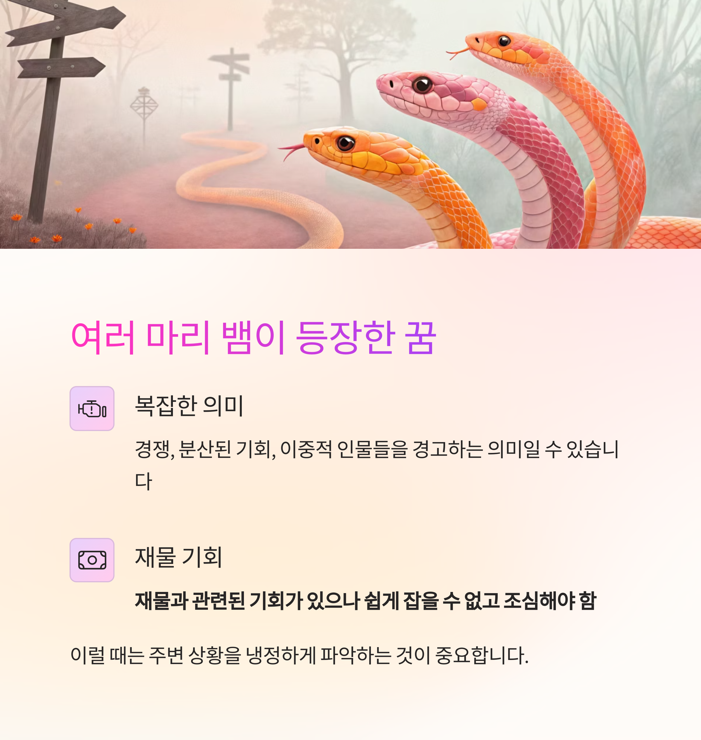 한 마리가 아닌 여러 마리의 뱀이 등장한다면 해석이 조금 복잡해집니다.
