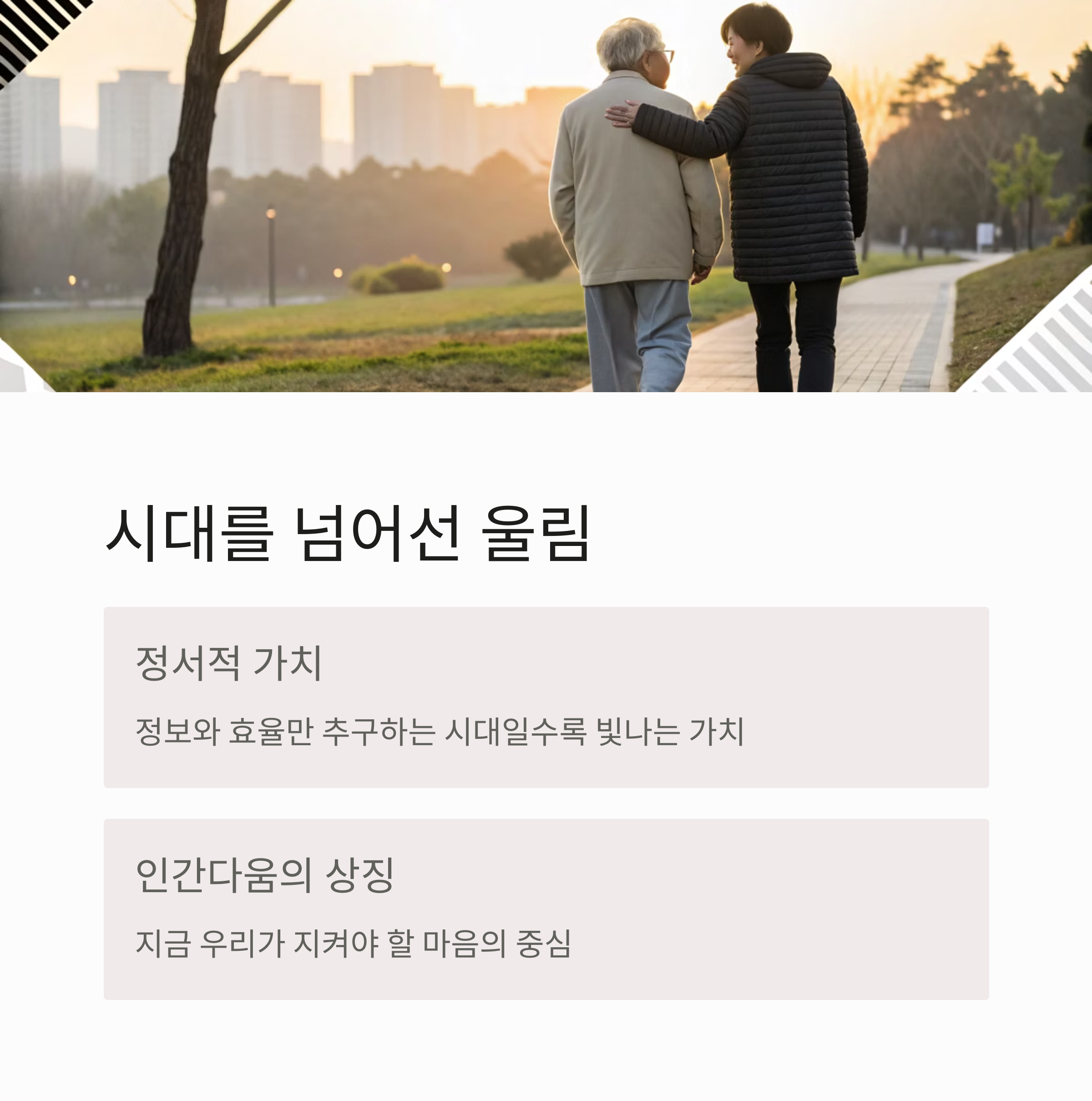 정보와 효율만을 추구하는 시대일수록, 정서적 가치는 더욱 빛납니다.