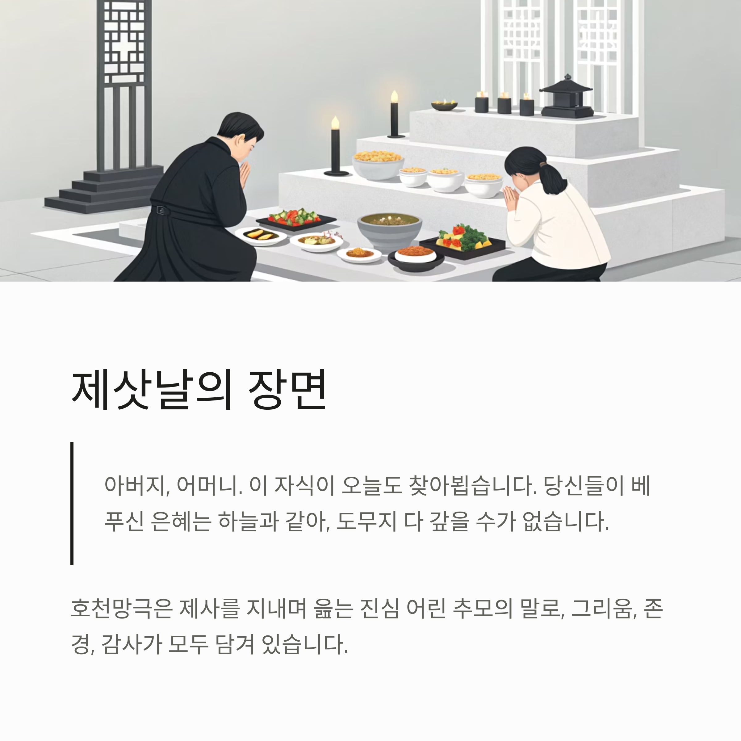 핵심: 호천망극은 전통적인 예절이 아니라, 마음의 중심이 되어야 합니다.