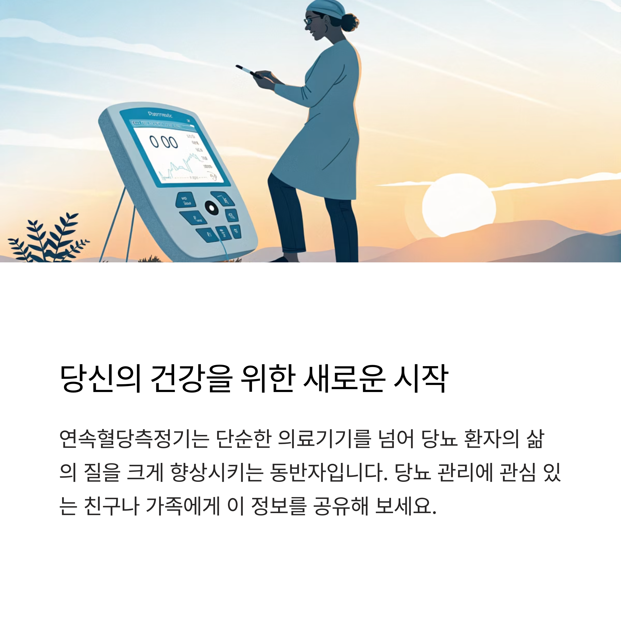 연속혈당측정기(CGM)는 1형 및 2형 당뇨환자에게 있어 혈당 조절의 새로운 길을 제시하고 있습니다. 기존의 손끝 채혈 방식보다 훨씬 더 정밀하고 실시간 데이터 분석이 가능해지면서, 당뇨 관리를 넘어 일상 전반의 삶의 질을 향상시키는 핵심 도구로 자리 잡고 있습니다.