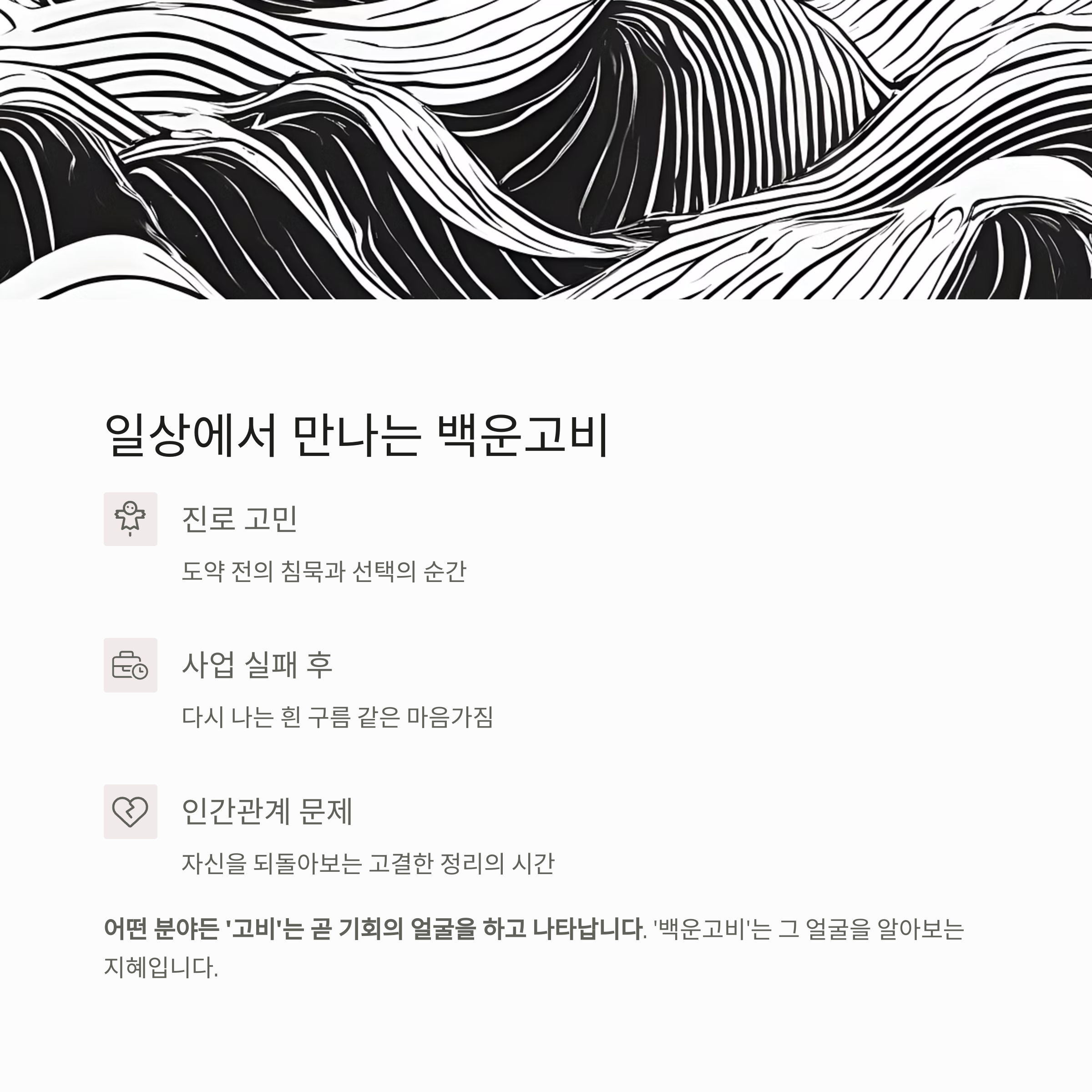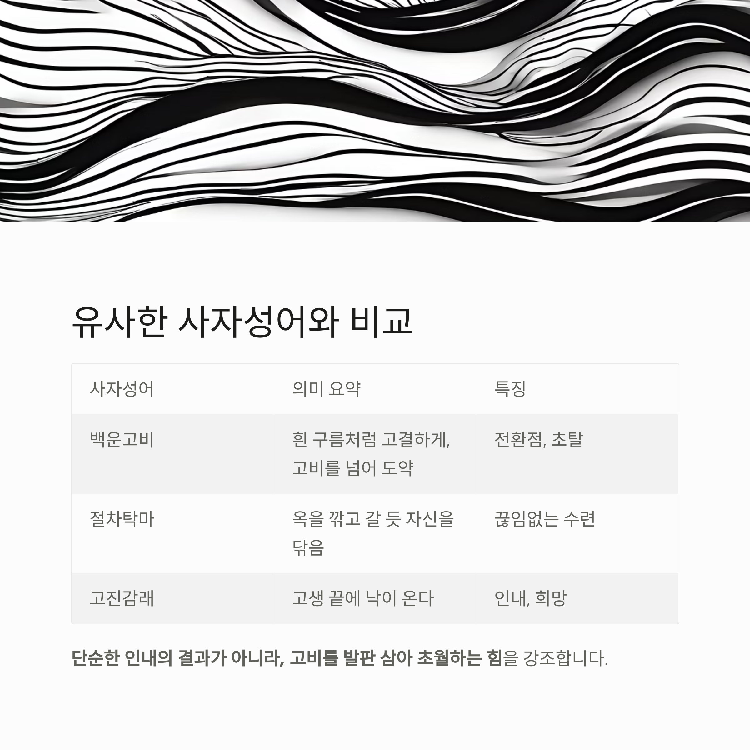 이처럼 '백운고비'는 단순한 인내의 결과가 아니라, 고비를 발판 삼아 초월하는 힘을 강조합니다.