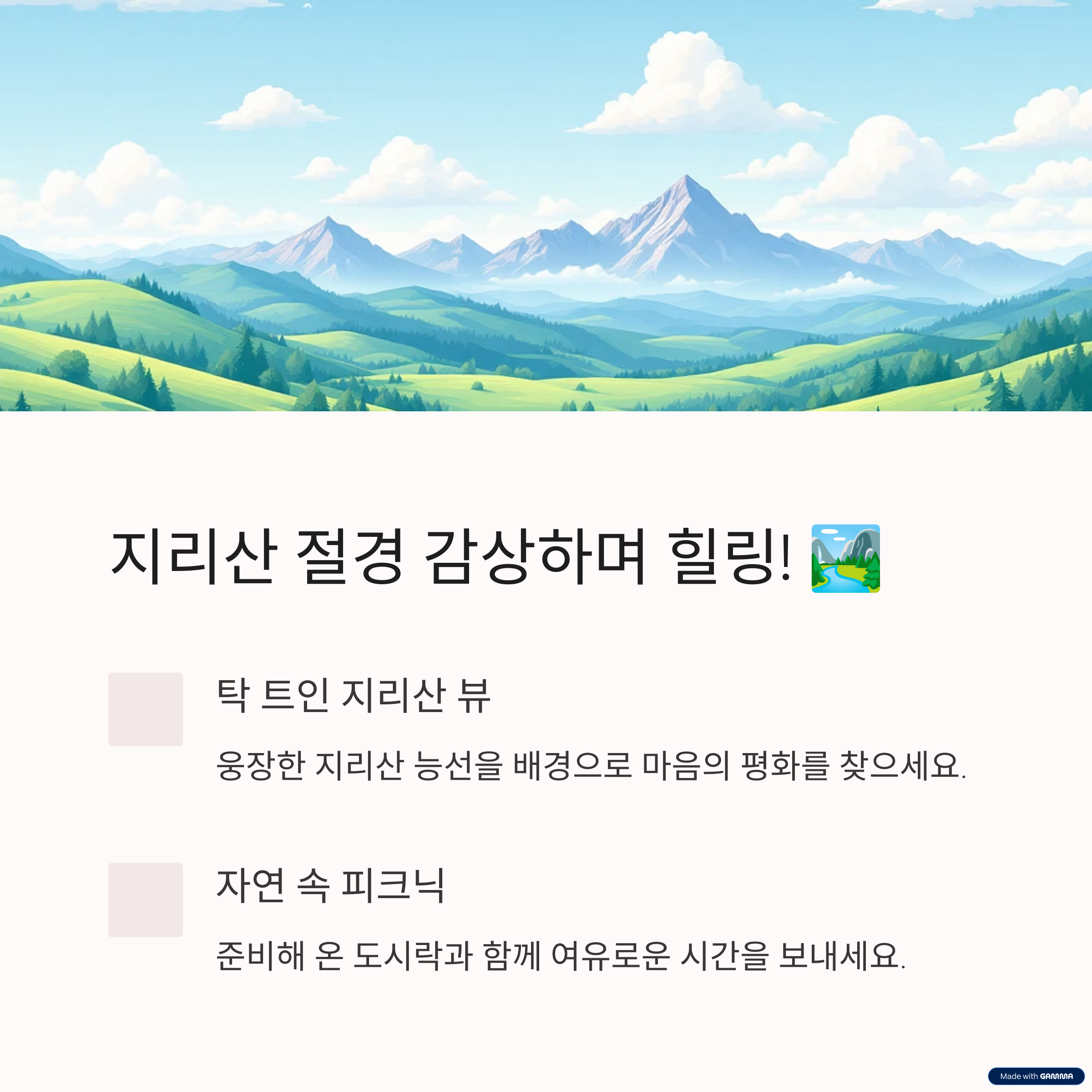 오늘은 봄철 국내 힐링 여행지로 주목받는 지리산 치즈랜드에 대해 준비했습니다.