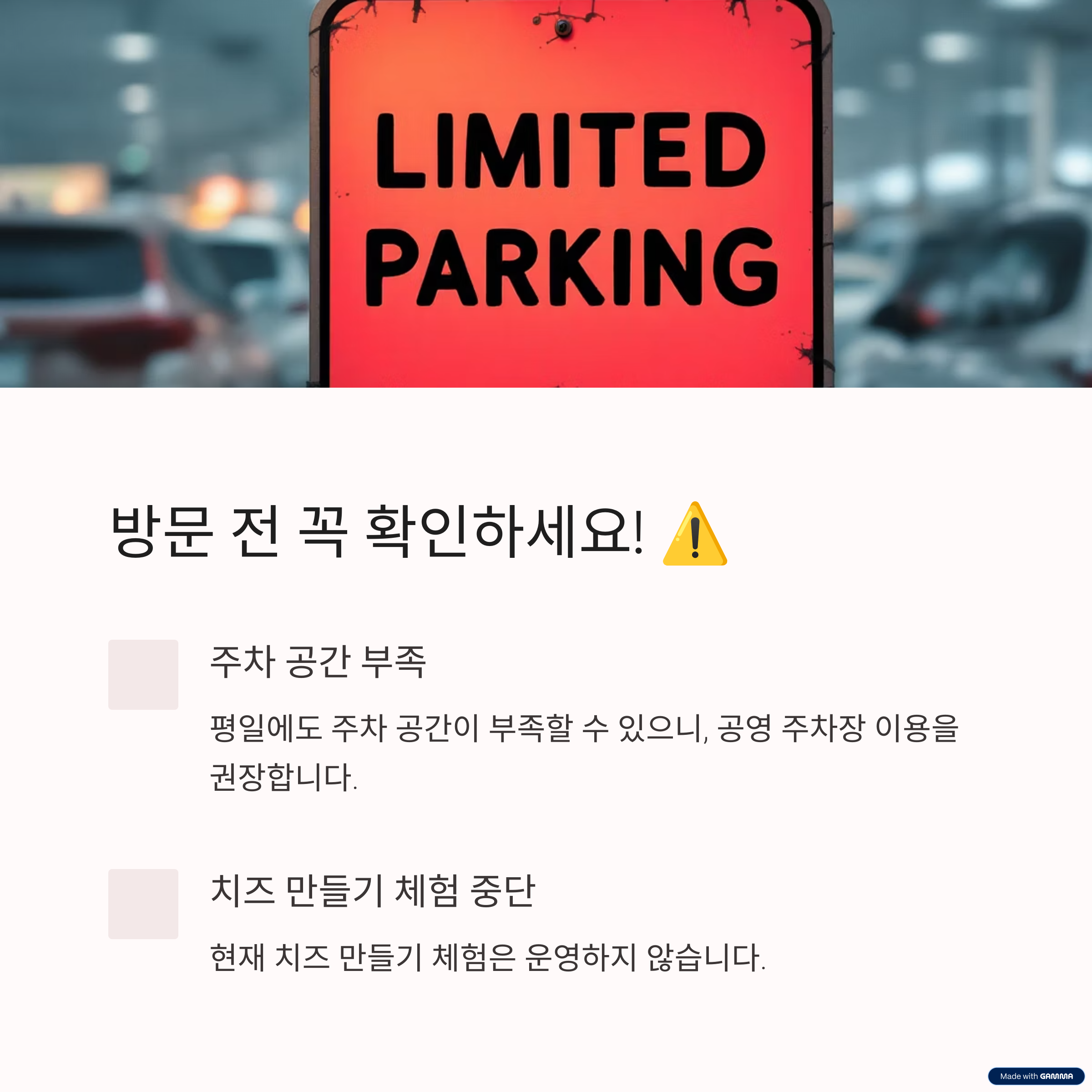 지리산 치즈랜드는 주차 공간 협소로 인해 공영주차장 이용이 추천되는 여행지입니다.