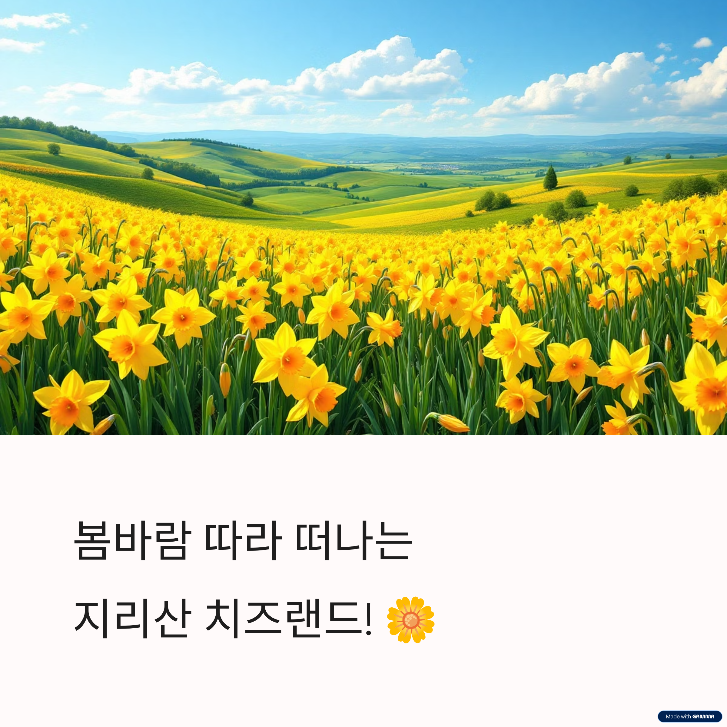 지리산 치즈랜드는 4월 초 수선화가 만개한 시기에 맞춰 방문하면 최고의 자연 풍광을 누릴 수 있는 봄철 대표 명소입니다.