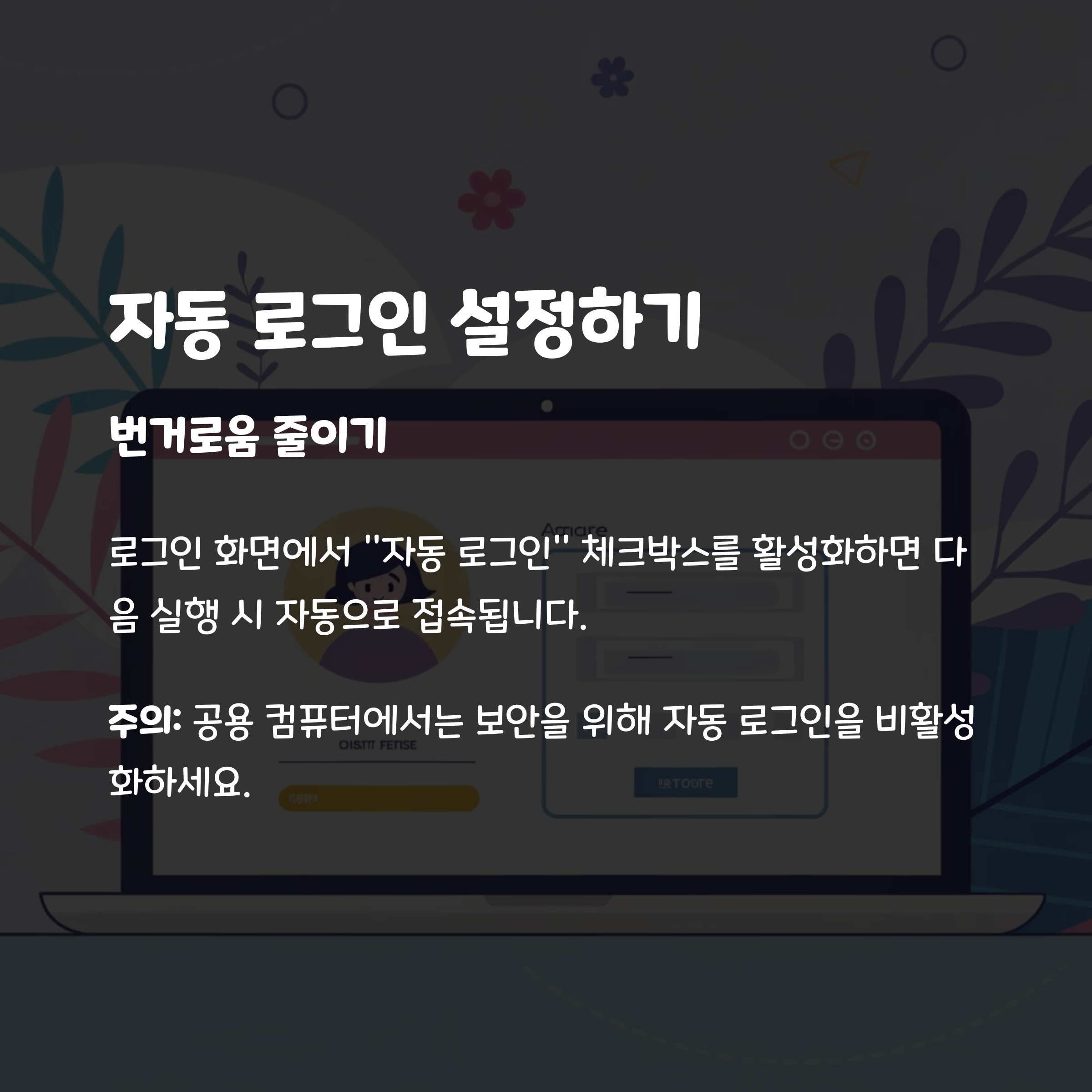 PC에서 매번 로그인하는 번거로움을 줄이기 위해 자동 로그인 기능을 사용할 수 있습니다.