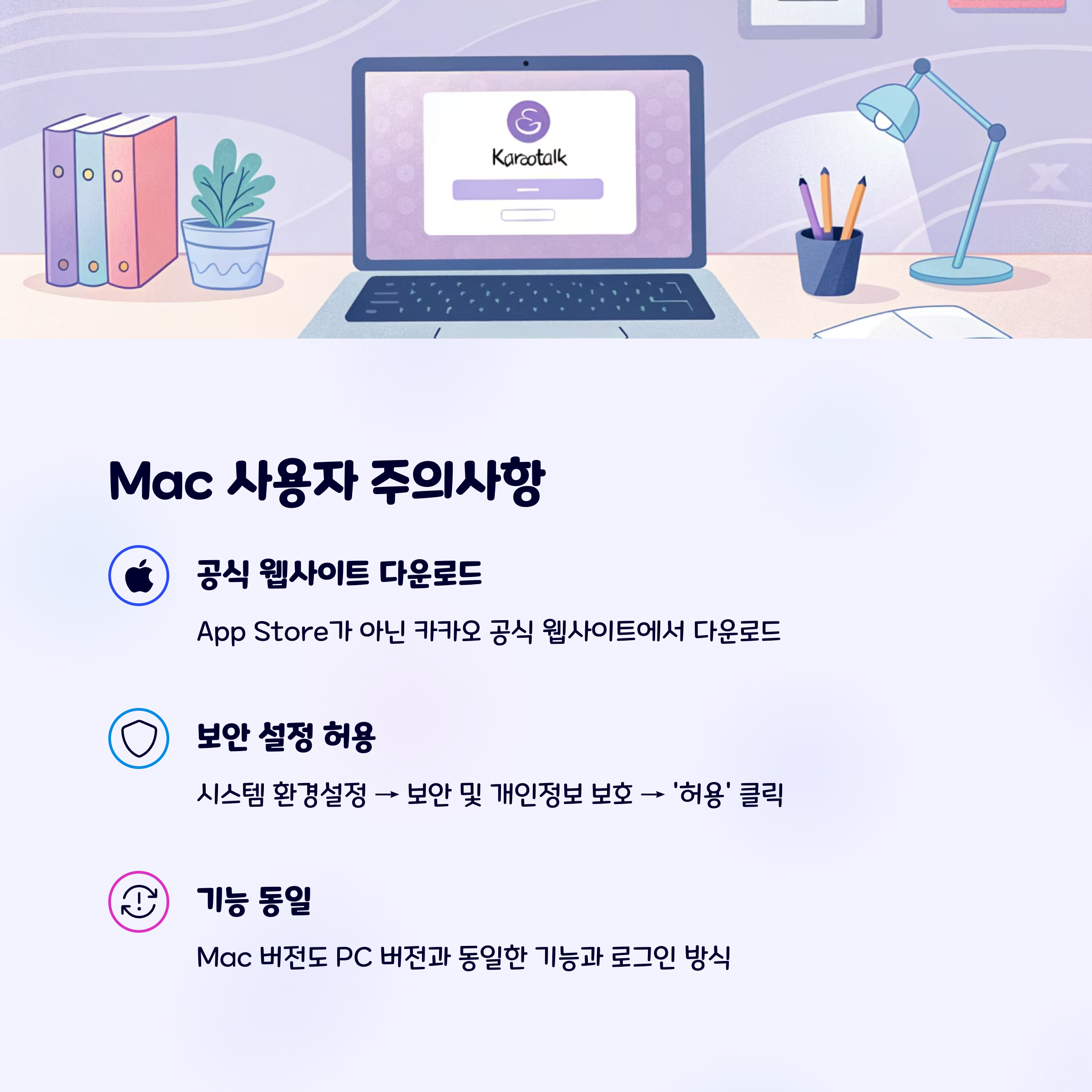 Mac에서는 App Store가 아닌 카카오 공식 웹사이트에서 직접 다운로드해야 합니다.