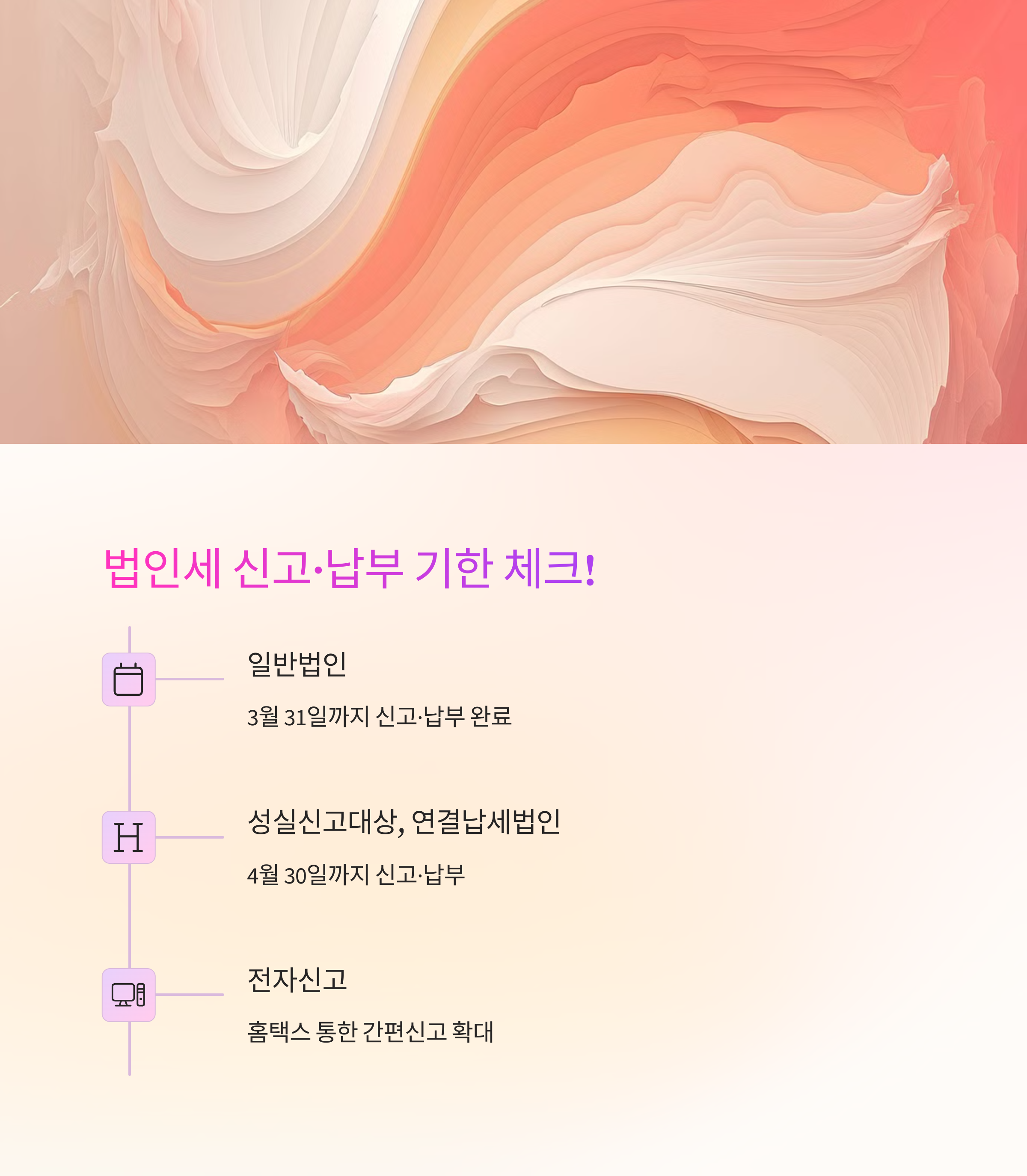 12월 결산 법인의 경우, 3월 31일까지 신고 및 납부가 원칙입니다