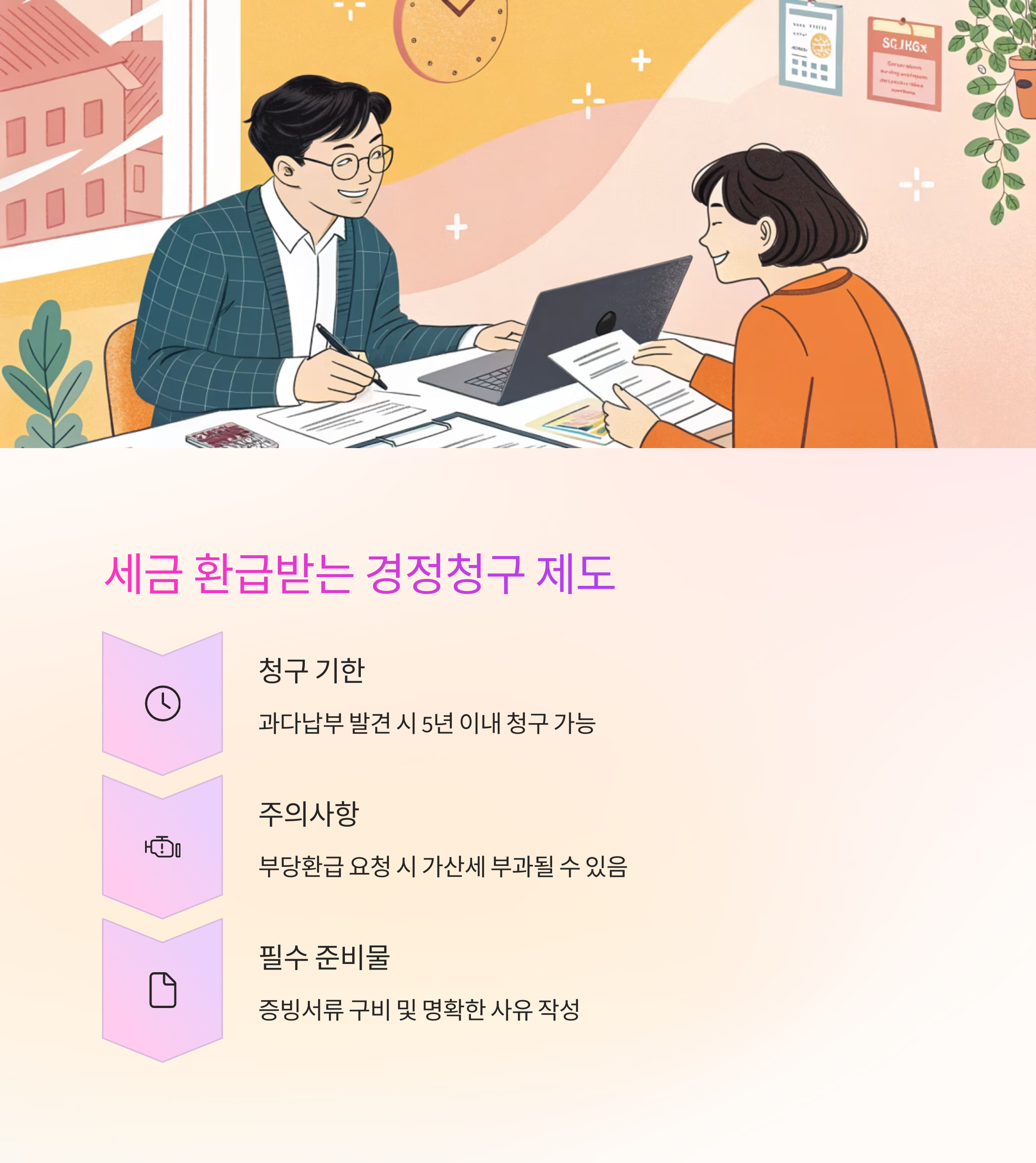 세무 신고 후 과다납부가 확인된 경우, 경정청구를 통해 환급이 가능합니다