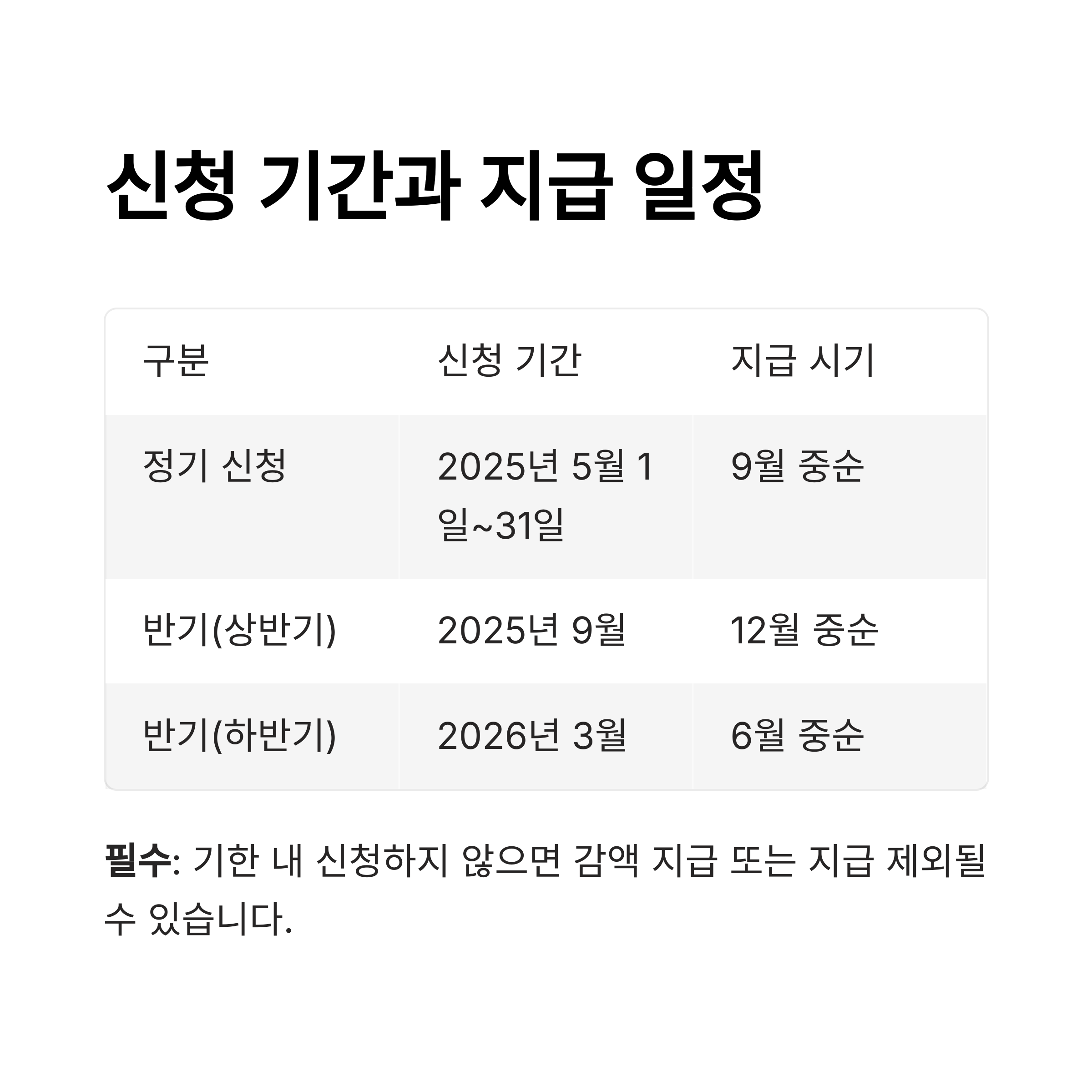 | 반기 신청(상반기분) | 2025년 9월 | 12월 중순 |