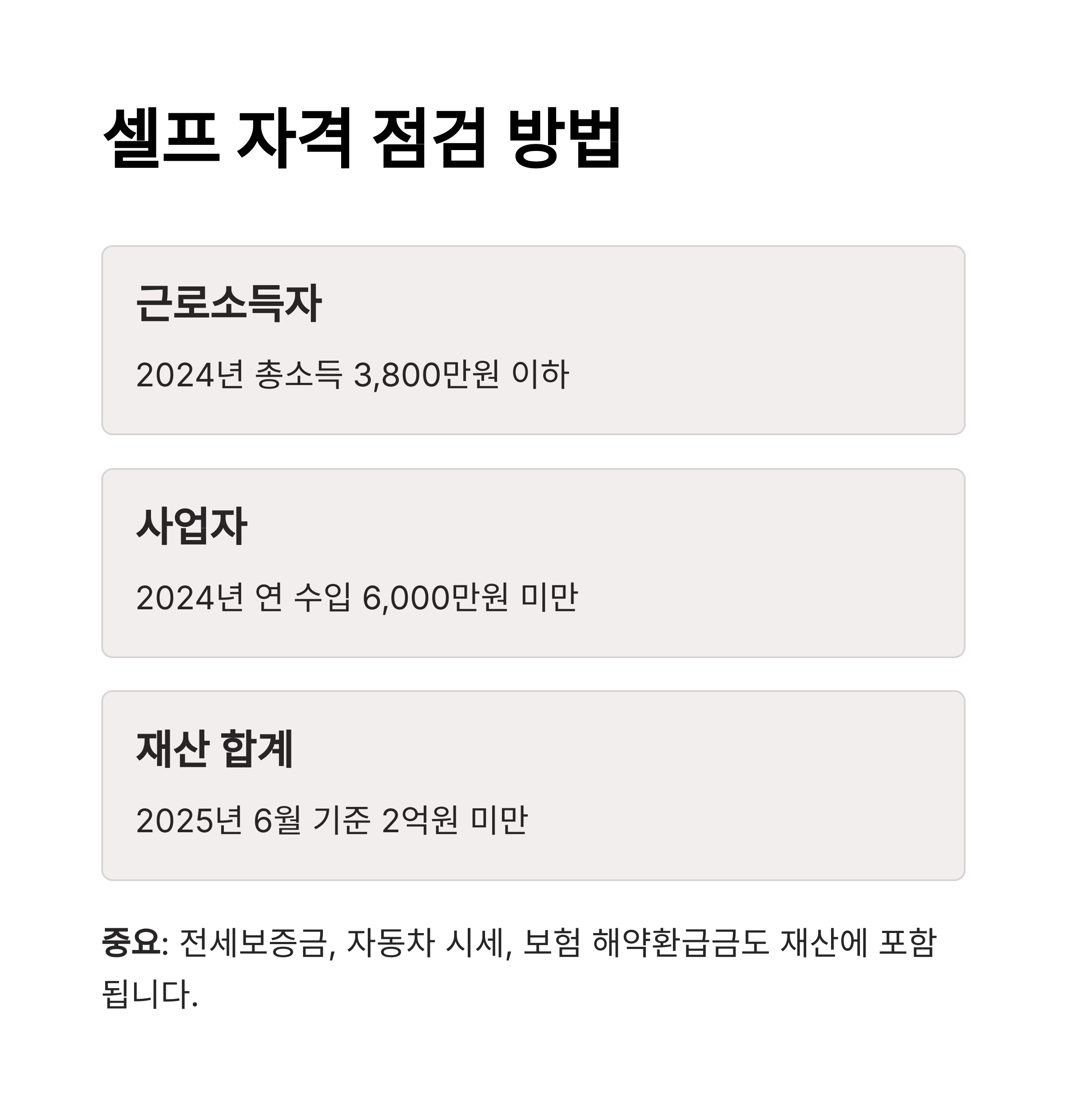 2025년 기준은 2024년 소득과 2025년 6월 1일 기준 재산을 바탕으로 심사됩니다.