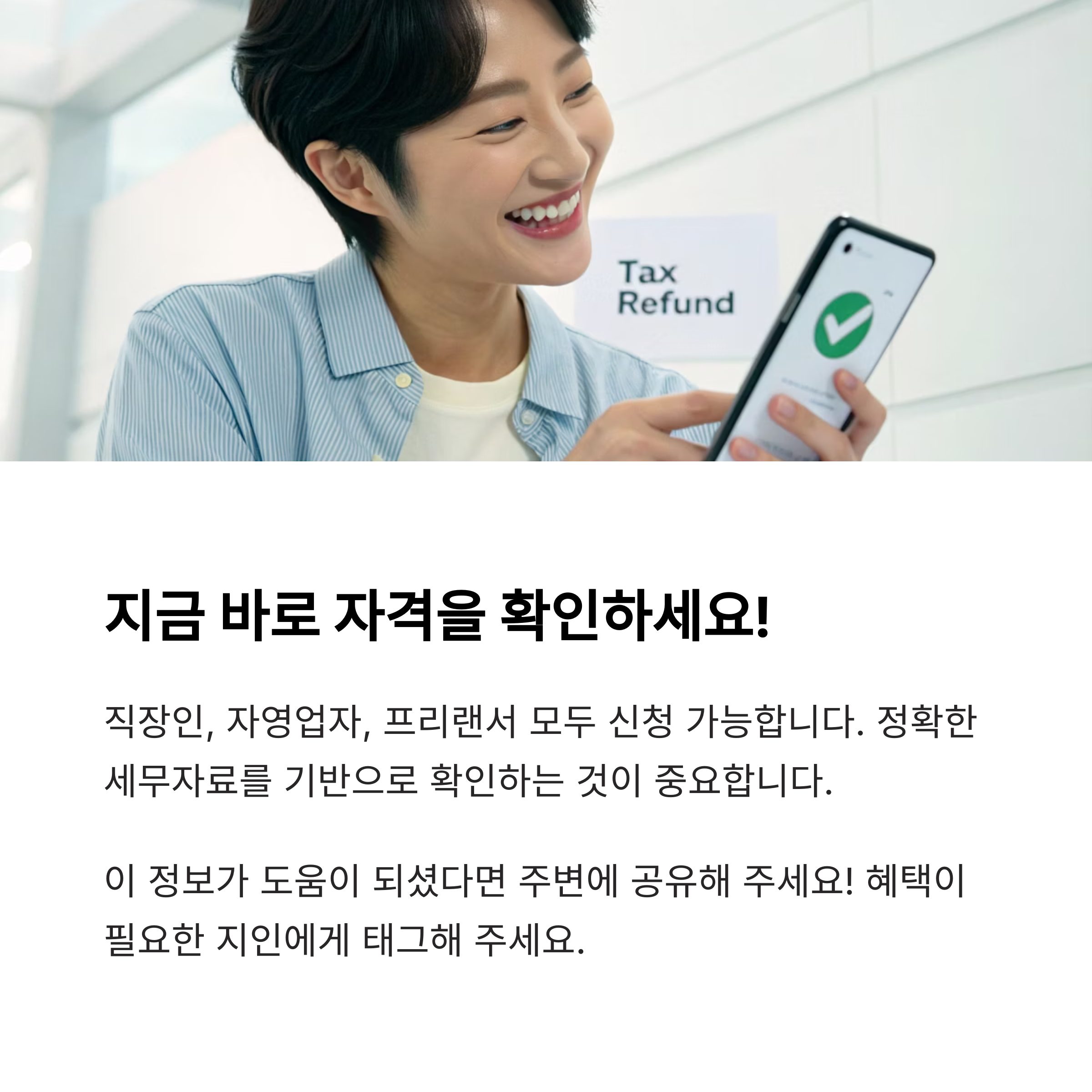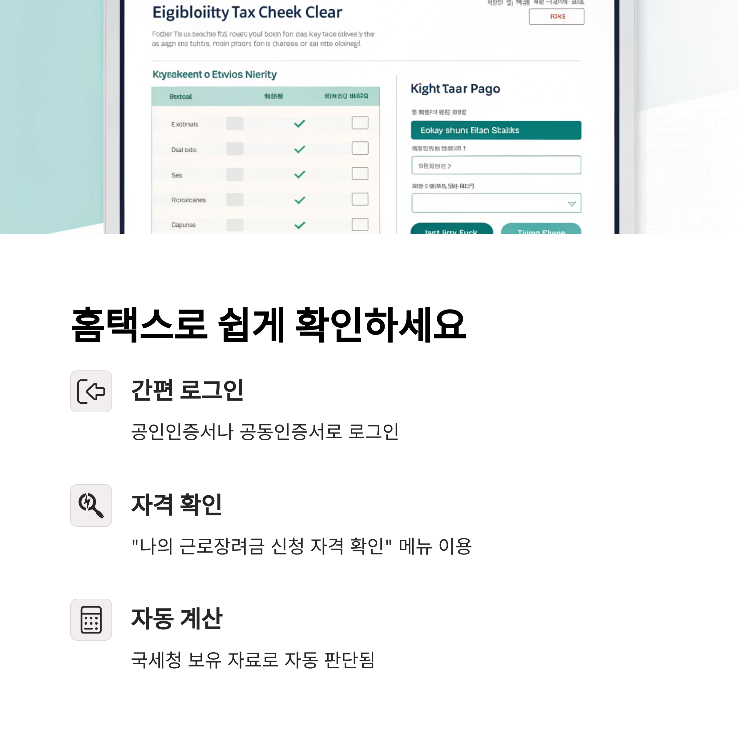 국세청 홈택스에서는 로그인만 하면 자격 여부를 자동으로 확인할 수 있는 서비스를 제공합니다.