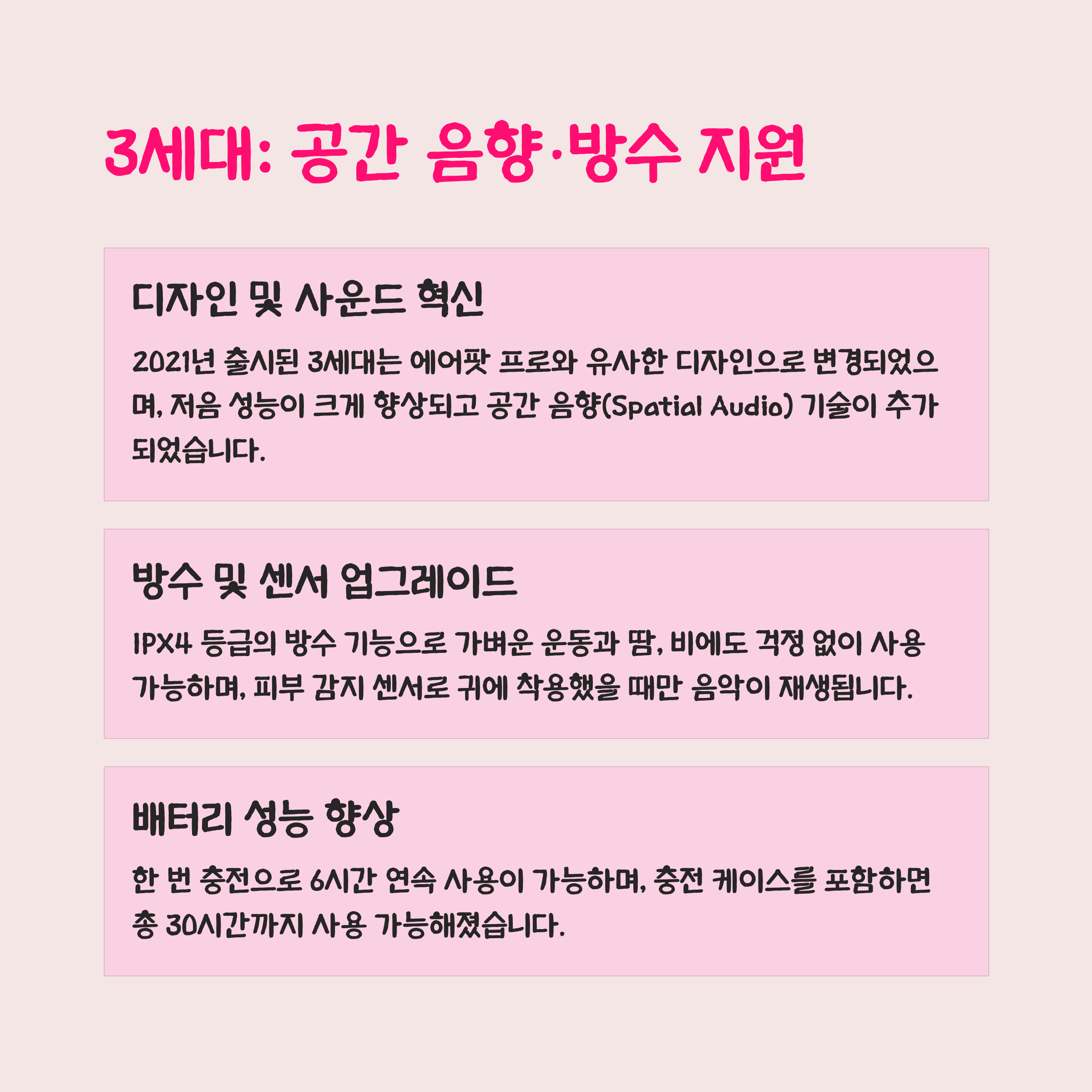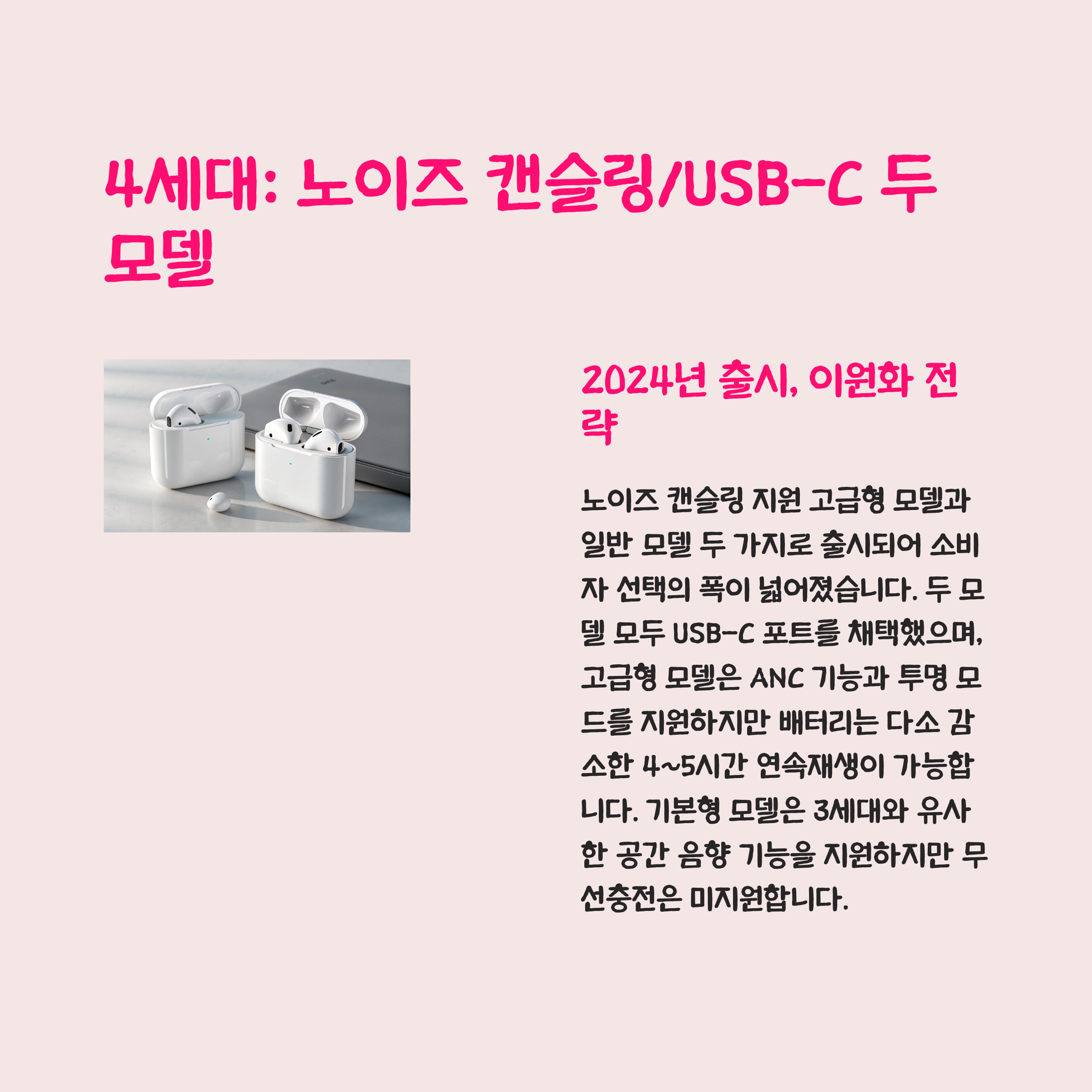 - 최신 기능 & 향후 지원 고려: 에어팟 4세대